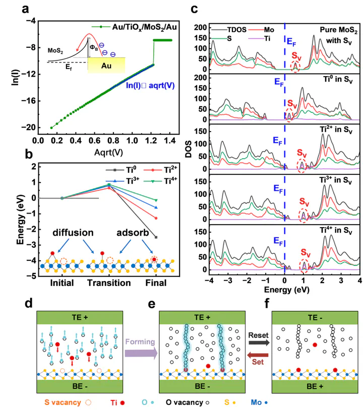 Uniformity, Linearity, and Symmetry Enhancement in TiOx/MoS2–xOx Based Analog RRAM via S-Vacancy Confined Nanofilament